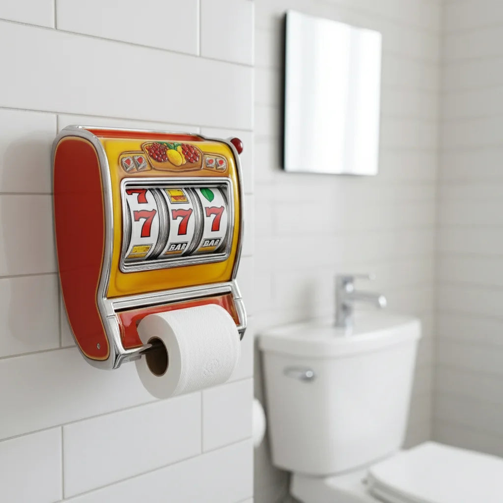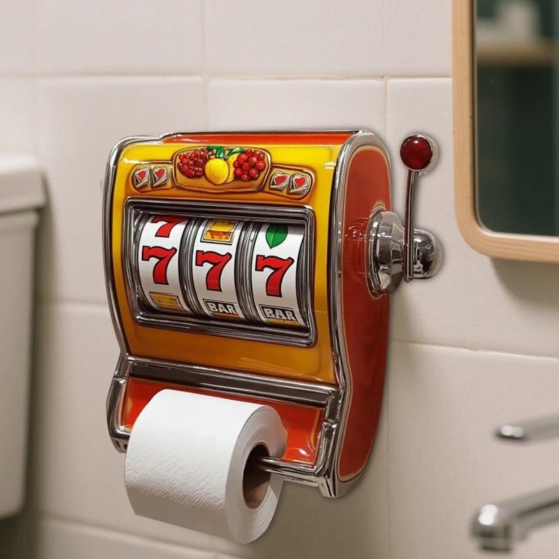 “Spin, Laugh, and Roll! The Slot Machine Toilet Paper Holder That Turns Every Bathroom Break Into a Jackpot!”